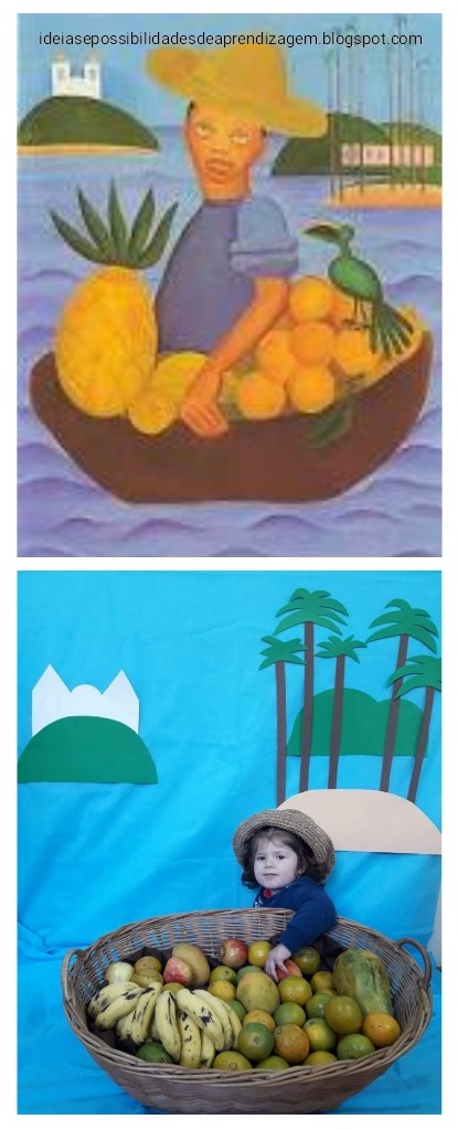 Analise da obra o vendedor de frutas de tarsila do amaral. Com criatividade e um pouco de habilidade manual as criancas entraram no quadro com a ajuda das professoras responsaveis. Imagem da obra de Tarsila do Amaral de 1925 que mostra um vendedor de frutas em um barco. Posteriormente puderam representar suas proprias obras em uma exposicao.