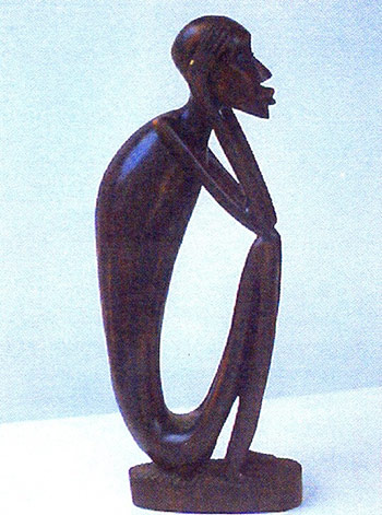 Estatua do pensador angolano. Estatueta Pensador mora na sede da UA Luanda - A estatueta do Pensador simbolo cultural angolano mais conhecido no mundo foi colocada no domingo 28 na Galeria de Arte do edificio sede da Uniao Africana UA em Addis-Abeba Etiopia. Lembrei-me pela primeira vez de um. A peca designada Pensador e uma das mais belas esculturas de origem Tchokwe constituindo hoje uma referencia cultural inerente a todos os angolanos visto tratar-se do Simbolo da Cultura Nacional.