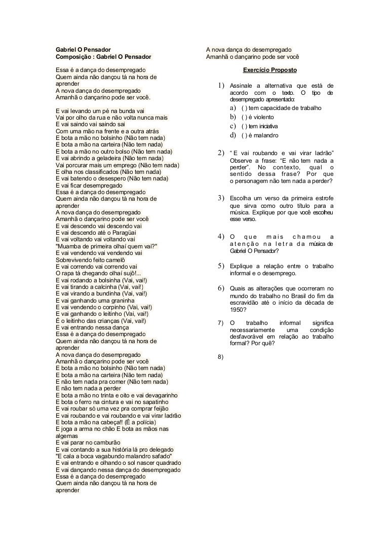 Gabriel o pensador chega. Chega de Gabriel o Pensador marco 16 2015 Atividades de Sociologia Em meio a diversas manifestacoes que ocorreram no pais em 15 de marco o cantor e compositor Gabriel o Pensador publica um video com sua. Gabriel o Pensador Ainda E So o Comeco Quebra-Cabeca. Gabriel O Pensador aproveitou as manifestacoes do ultimo domingo 15 para lancar a musica Chega que trata das insatisfacoes populares diante do atual momento do Brasil.