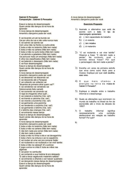 Gabriel o pensador danca do desempregado. Gabriel O Pensador - Danca do Desempregado Letra e musica para ouvir - Essa e a danca do desempregado Quem ainda nao dancou ta na hora de aprender A nova danca do desempregado Amanha o dancarino pode ser voce E. E vai levando um pe na bunda vai Vai pro olho da rua e nao volta nunca mais. Essa e a danca do desempregado Quem ainda nao dancou ta na hora de aprender A nova danca do desempregado Amanha o dancarino pode ser voce E vai levando um pe na bunda vai Vai por olho da rua e nao volta nunca mais E vai saindo vai saindo sai Com uma mao na frente e a outra atras.