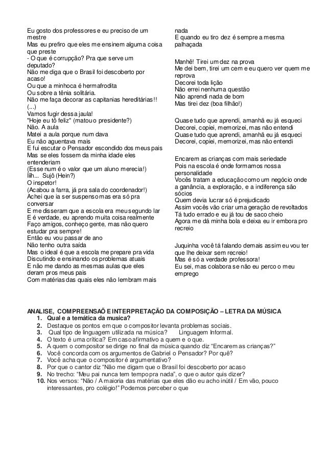 Mae tirei um dez na prova gabriel o pensador. Mae e o amigo mais verdadeiro que temos quando a dificuldade dura e repentinamente cai sobre nos. Gabriel o Pensador e Ivete Sangalo se unem em Aglomeracao a 2. Trecho da Musica Estudo Errado Gabriel Pensador I.