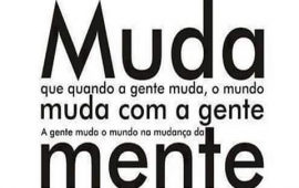 Que quando a gente muda o mundo muda com a gente. O mundo muda tudo muda todo mundo muda Mas so mudo minha cabeca se for melhor pra mim. Muda que quando a gente muda o mundo muda com a gente A gente muda o mundo na mudanca da mente E quando a mente muda a gente anda pra frente E quando a gente manda ninguem manda na gente Na mudanca de atitude nao ha mal que nao se mude nem doenca sem cura Na mudanca de postura a gente fica mais seguro Na mudanca do presente a gente molda o futuro Ate quando voce vai levando porrada.