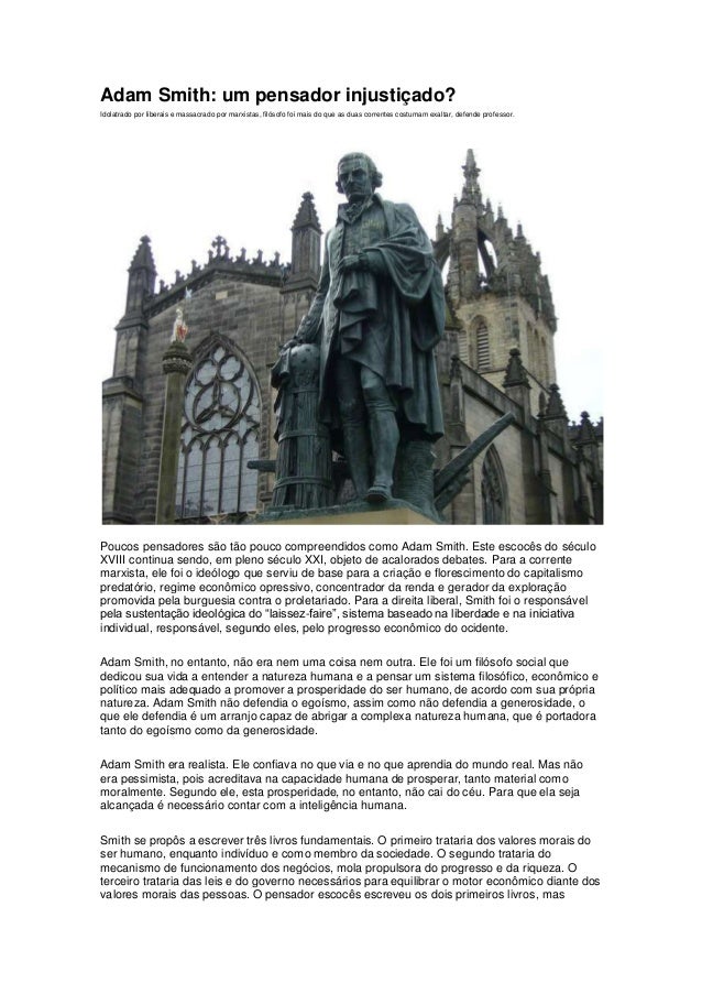 O Pensador Do Liberalismo Economico Adam Smith Defendia