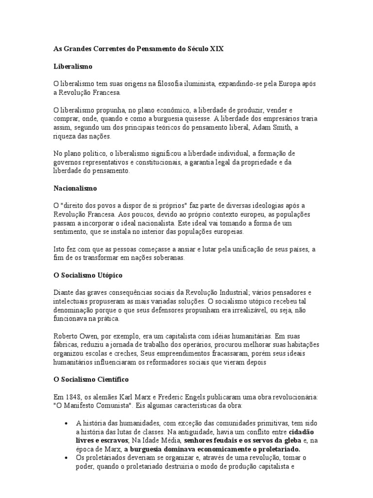 Ideias fundamentais que reluzem. Entre esses pensadores que discutiram propostas de superacao dos problemas sociais destacaram-se. O seculo XIX tambem foi muito rico para a filosofia com o surgimento de teorias que sao ate hoje estudadas como o Positivismo de Auguste Comte o Marxismo de Karl Marx e Friedrich Engels e o Pragmatismo de Charlie Sanders Peirce William James e Oliver Wendell.