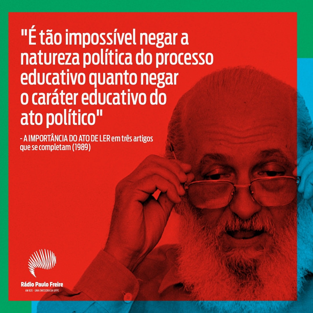 O Instituto Paulo Freire IPF e uma associacao civil sem fins lucrativos criada em 1991 e fundada oficialmente em 1 de setembro de 1992. Conhecido principalmente pelo metodo de alfabetizacao de adultos que leva seu nome ele desenvolveu um pensamento pedagogico assumidamente politico. A leitura do mundo precede a leitura da palavra dai que a posterior leitura desta nao possa prescindir da continuidade da leitura daquele.