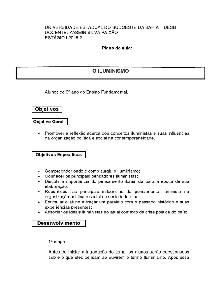 Plano de aula pensadores iluministas. -Trabalhar os conceitos de fi-siocracia liberalismo econo-mico e despotismo esclarecido cam os fatos sociais tais como. - Para garantir e proteger esses direitos naturais os homens criaram os governos. Nem s de crtica viviam os Iluministas.